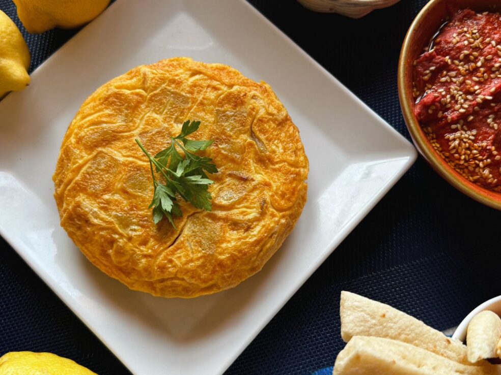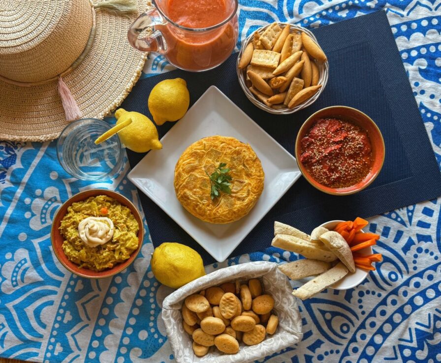 Ukrainian” Salad, Croquettes for 4, Hummus, 1L of Salmorejo and 18cm Spanish Omelette.
