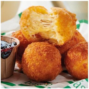 Crunchy Menorcan cheese balls, served with blueberry jam.