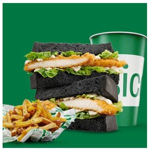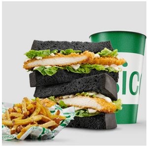 Premium XL sandwich with crispy chicken sirloin, lettuce, mayonnaise and our brioche with activated charcoal.
