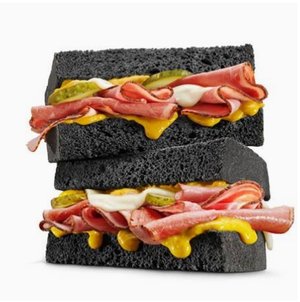 Premium XL sandwich with beef pastrami, Swiss cheese, pickles, mustard and our brioche with activated charcoal.