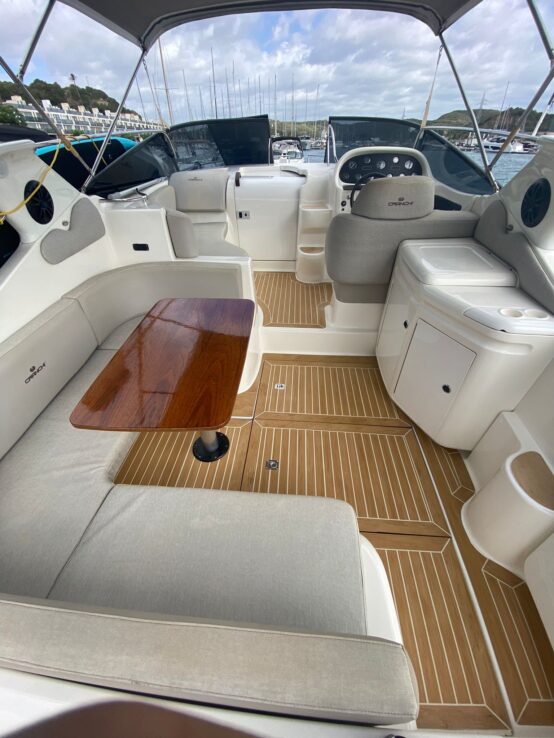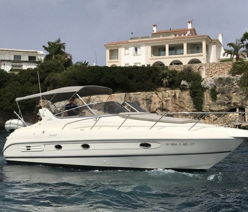 Descubre las espectaculares calas y playas de Menorca a bordo de uno de los modelos insignia del astillero italiano Cranchi. Su versatilidad y robustez serán tus mejores aliados para disfrutar de una jornada a bordo con absoluta comodidad. La embarcación dispone de una amplia bañera de popa para disfrutar de las largas sobremesas veraniegas, así como de un gran solarium de proa para tomar el sol.