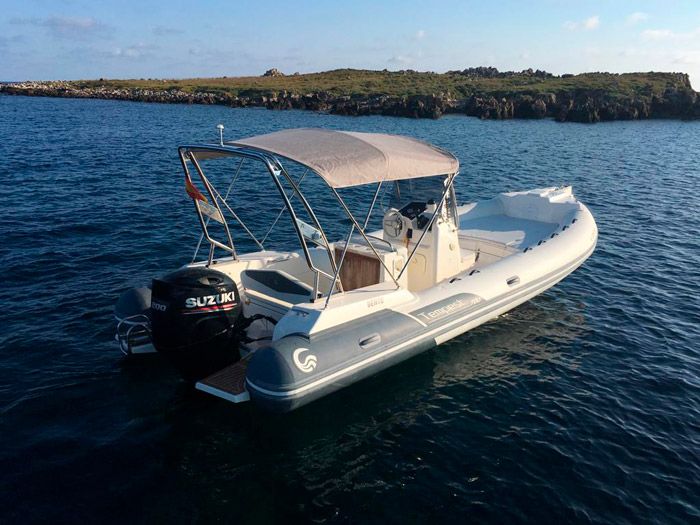 La CAPELLI TEMPEST 700 es la embarcación perfecta para pasar el día navegando, gracias a su gran solárium y amplia cubierta se puede disfrutar de un magnífico día en la costa norte de Menorca.