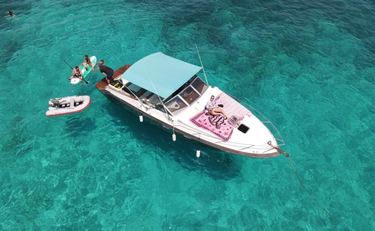 Bienvenidos a nuestro barco, esta lancha clásica fabricada en Barcelona en los años 90 es la culpable de que nosotros desarrolláramos este proyecto, además de disfrutar de la experiencia de navegar y pasar magníficos fines de semana a bordo. Creímos que los clientes preferirían nuestra lancha por ser rápida, pero lo que realmente todos valoran, y nosotros también, es que no hay ningún barco con más espacio en cubierta para poder disfrutar en familia, tiene capacidad para 7 pasajero y yo, realmente pocos para tanto espacio pero cada uno lo disfruta más.