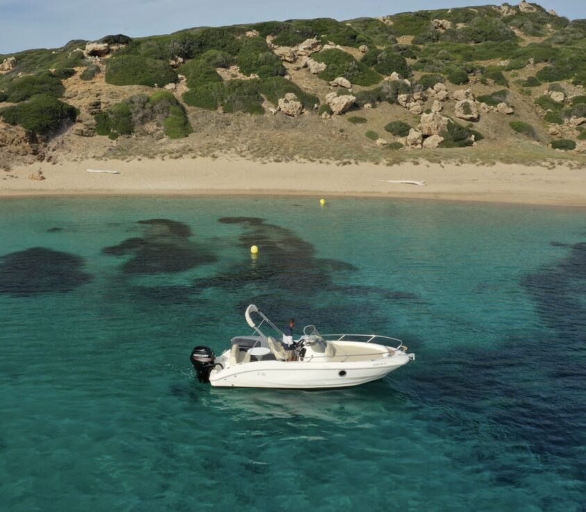 Ven a descubrir la isla con nuestra pequeña «Martina», una Sessa Key Largo 20 de 6 metros y capacidad para 6 personas, alquiler con o sin patrón, titulación mínima LN, el conocido como «titulín», ideal para descubrir los rincones de la isla en familia o con amigos. Patrón opcional no incluido en el precio, combustible no incluido.