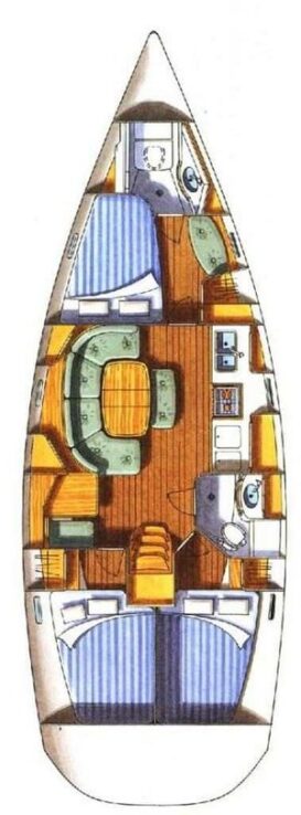 Papaya is a Benneteau Oceanis Clipper 393, a spacious, safe and easy to sail sailing yacht. She sleeps up to 8 people in three double cabins and a convertible saloon. It has 2 bathrooms, equipped kitchen, fridge and everything you may need to enjoy the sea.