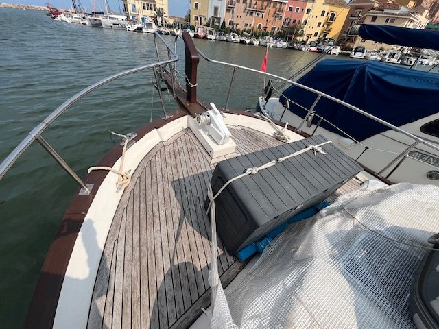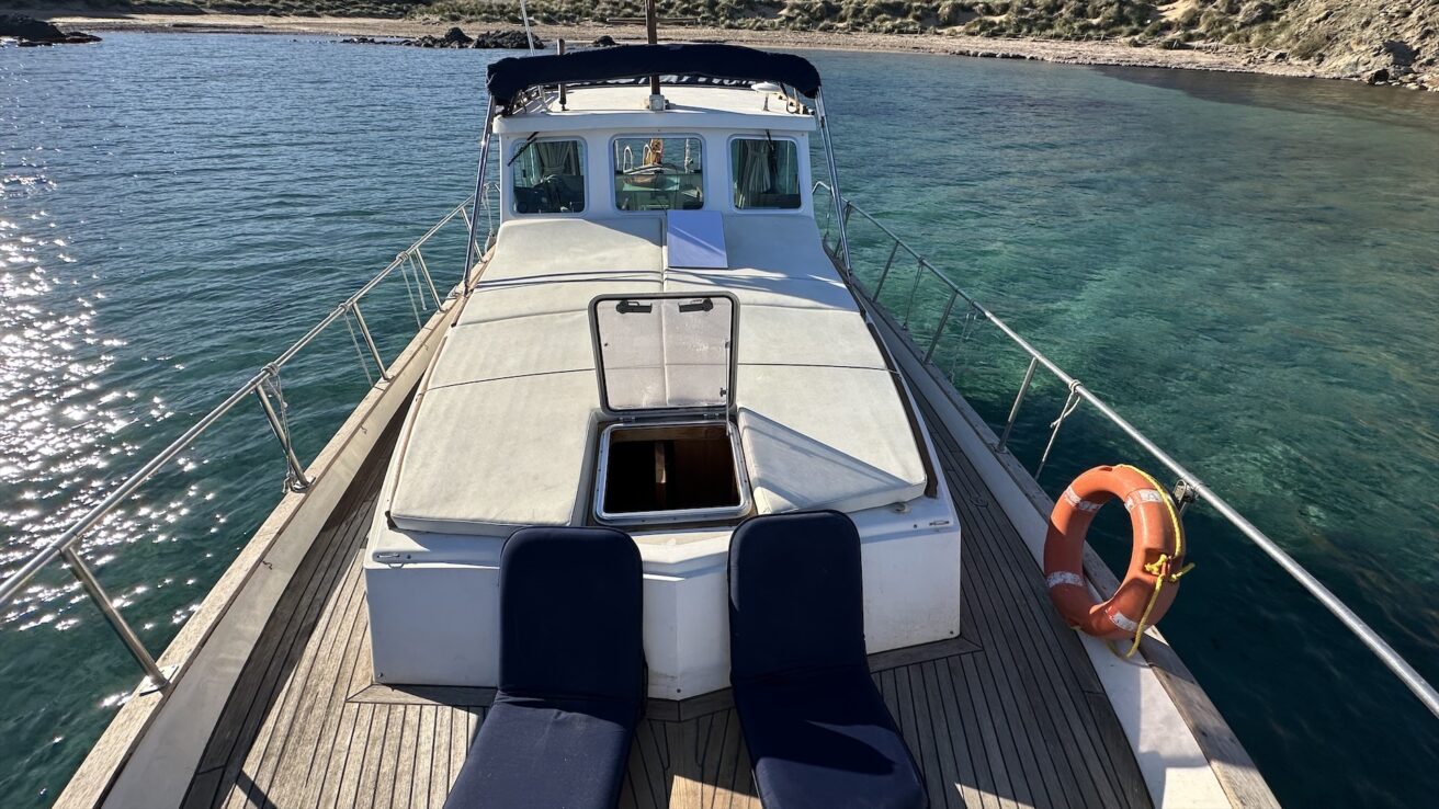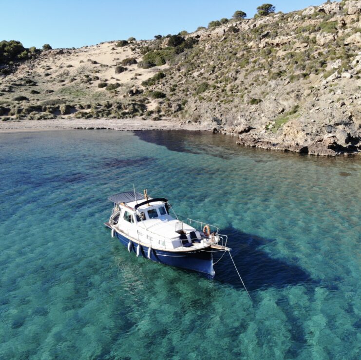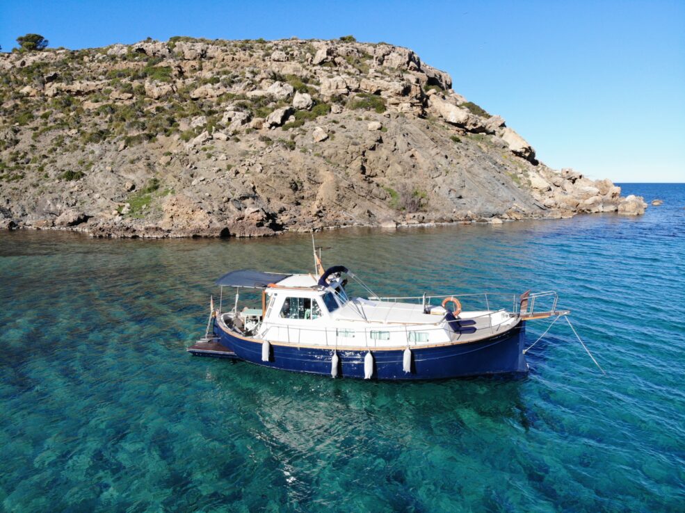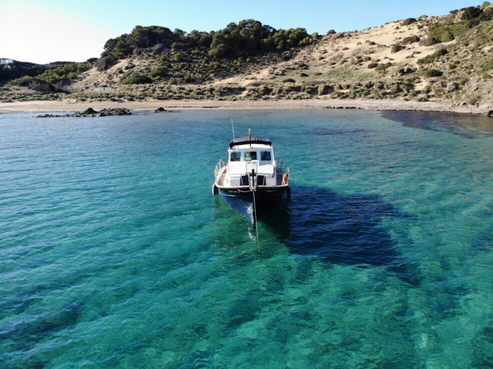 CAIB 2357/2025 This magnificent boat is called CATALINA, 11m long and more than 3,5m wide, a suitable size for coastal sailing, approaching the great cliffs of the south of Menorca and its limestone (called in Menorquin, Mares), to observe closely its fauna and enjoy the crystal clear waters and beauty of its white sandy beaches.