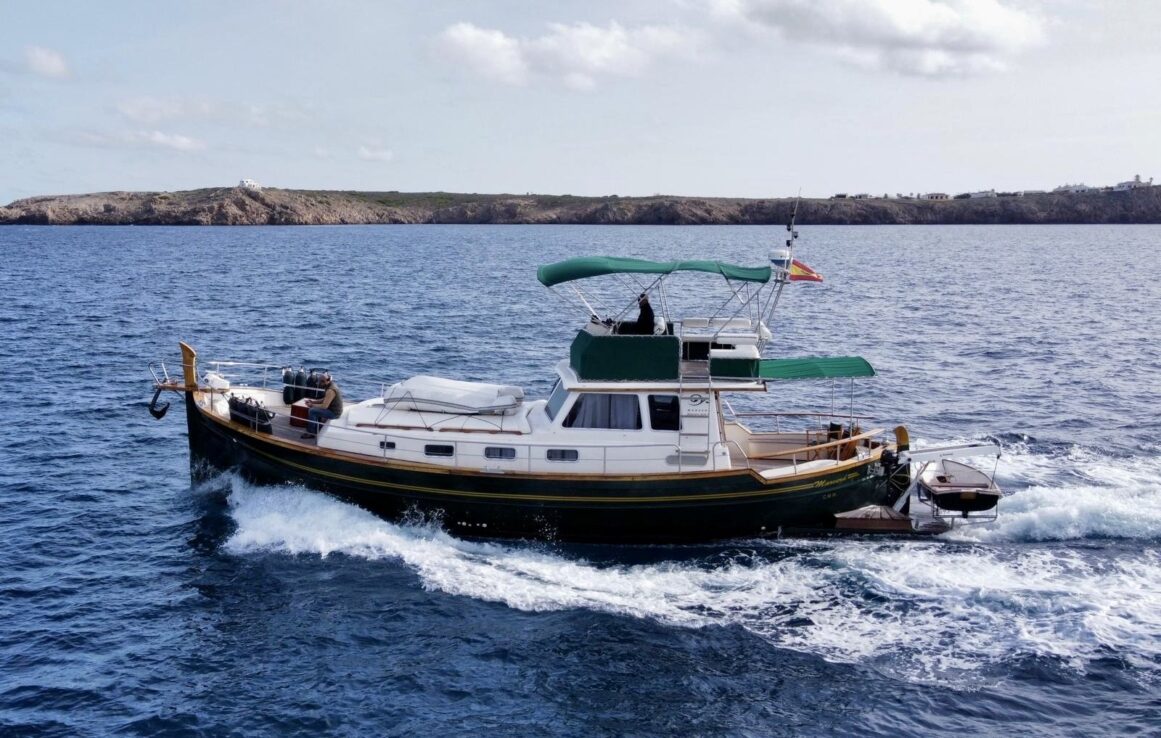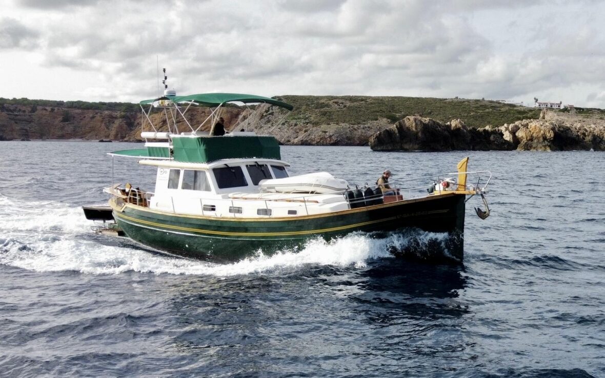 CAIB 2357/2025 This magnificent boat is called CATALINA, 11m long and more than 3,5m wide, a suitable size for coastal sailing, approaching the great cliffs of the south of Menorca and its limestone (called in Menorquin, Mares), to observe closely its fauna and enjoy the crystal clear waters and beauty of its white sandy beaches.