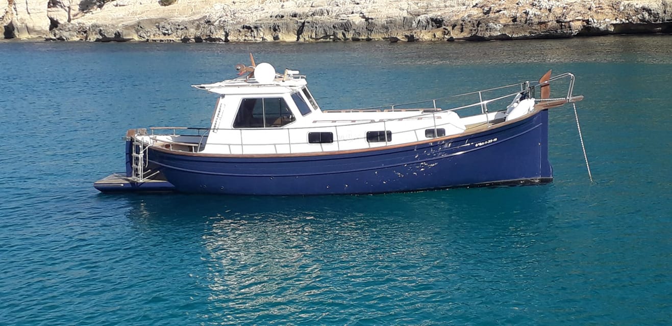 CAIB 2357/2025 This magnificent boat is called CATALINA, 11m long and more than 3,5m wide, a suitable size for coastal sailing, approaching the great cliffs of the south of Menorca and its limestone (called in Menorquin, Mares), to observe closely its fauna and enjoy the crystal clear waters and beauty of its white sandy beaches.